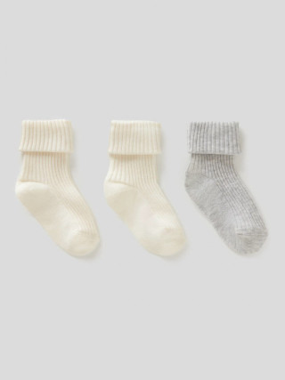 Benetton set od tri para čarapa za bebe od organske mešavine rastegljivog pamuka. Dužina iznad zkočnog zgloba.