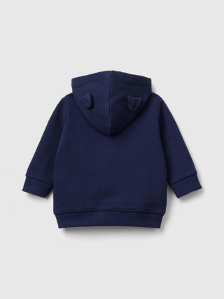 Benetton mekana dukserica za bebe od čistog organskog pamuka koja je ujedno čvrsta i lagana. Logo zeke izvezen na levoj strani grudi i otvara se sa patent zatvaračem. Praktična i zabavna sa svojom kapuljačom koja ima uši od žerseja.