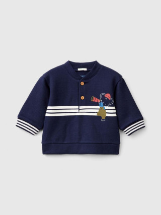 Benetton mekana dukserica za bebe od mešavine pamuka sa životinjskim printom na prednjoj strani. Okrugli izrez, delimično kopčanje sa dugmadima na prednjoj strani i dugim rukavima. Udoban i moderan.
