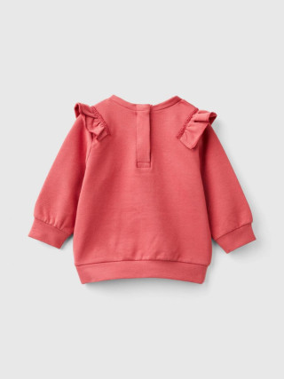 Benetton dukserica dugih rukava za bebe od mekog rastegljivog organskog pamuka. Okrugli dekolte, karneri sa prednje i zadnje strane kao i skriveni otvor sa dugmadima na leđima. Romantično i ženstveno.