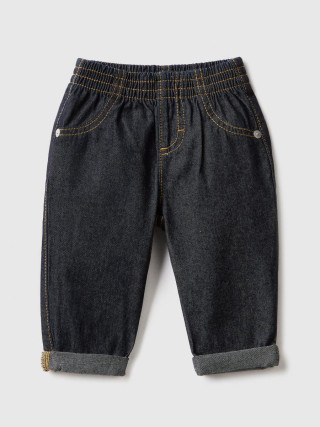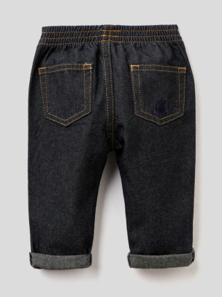Benetton pantalone za bebe od čistog pamučnog teksasa sa pohabanim izgledom. Pune detalja: lažni džepovi u zapadnom stilu na prednjoj strani, lažni preklop, džepovi našiveni pozadi. Maksimalna funkcionalnost zahvaljujući struku sa unutrašnjom elastičnom trakom.