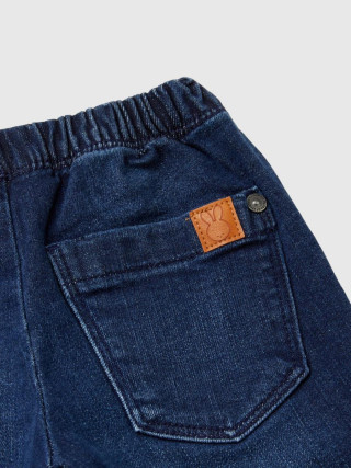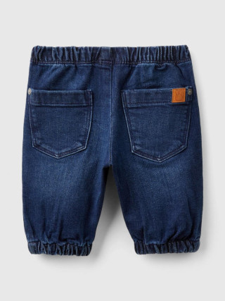 Benetton pantalone za bebe od rastegljivog pamučnog teksasa. Unutrašnja elastična traka u struku i na dnu nogavice, lažna vezica i džepovi na leđima. Detalj centralnog rebra duž noge. Ležeran i moderan stil u verziji za bebe.