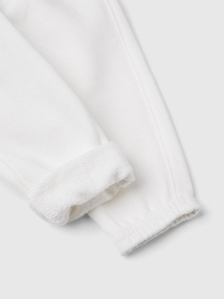 Benetton donji deo trenerke za bebe od organskog čistog pamuka sa postojanim, ali laganim osećajem. Elastična u struku i donjem delu nogu. Mek i zabavan komad, sa izvezenim životinjskim likom na leđima i ušima sa apliciranim dodatkom.