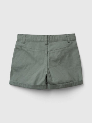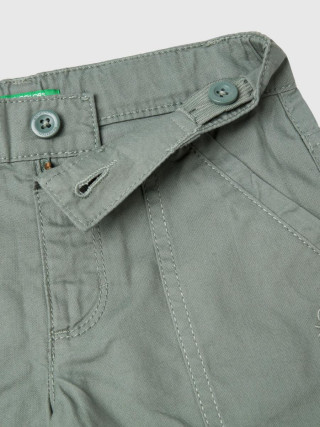 Benetton šorts za dečaka od čistog pamuka, lagane tkanine. Podesiva unutrašnja elastična traka u struku, patent zatvarač i otvaranje dugmetom. Prednji džepovi i preklop na dnu nogavica. Udoban i lak za kombinovanje.