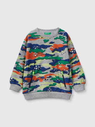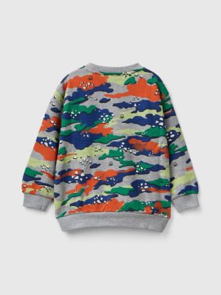 Benetton dukserica dugih rukava za dečaka sa okruglim izrezom od mekog čistog pamuka. Kengur džep sa patent zatvaračem i neonskim zatvaračem na prednjoj strani. Militari print sa neonskim detaljima po celoj odeći.