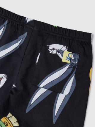 Benetton pidžama za dečake od laganog čistog pamuka. Majica sa okruglim izrezom kratkih rukava sa štampom Looney Tunes na prednjoj strani. Šorts sa štampom, elastičnim strukom i džepom na leđima.