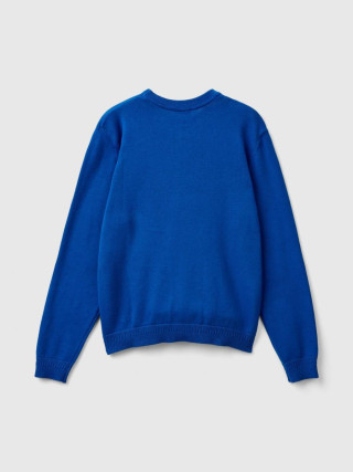 Benetton džemper za dečaka sa okruglim izrezom dugih rukava od čistog pamuka. Vez logotipa na levoj strani grudi i rebrastim ivicama.