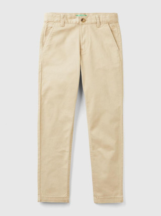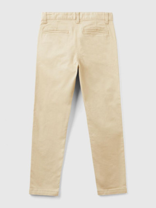 Benetton pantalone za dečaka od toplog rastegljivog pamuka. Slim fit model sa normalnim strukom. Kopčaju se patentnim zatvaračem i dugmetom, prednji džepovi. Džepovi sa šavovima i mali nabori na leđima. Vezeni logo u blizini levog džepa. Odlična alternativa klasičnom teksasu.
