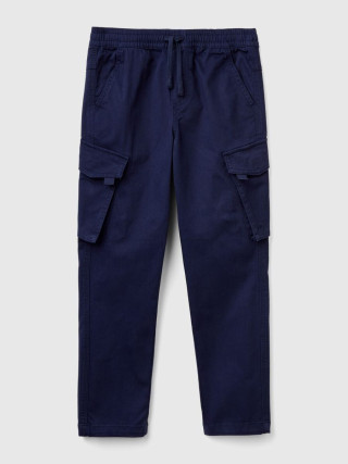 Benetton pantalone za dečaka u cargo stilu od rastegljivog pamuka sa slim fit krojem. Elastični struk sa vezicom, džepovi na prednjoj strani. Ažurirani izgled sa maksi džepovima sa preklopom sa strane.
