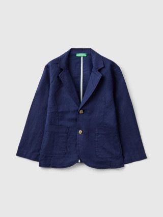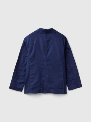 Benetton sako za dečaka na rever, prednjim kopčanjem na dugme i džepovima na dnu. Ovaj komad je napravljen od mešavine pamuka i lana: otpornih biljnih vlakana koje se mogu reciklirati i koje troše minimalne prirodne resurse.