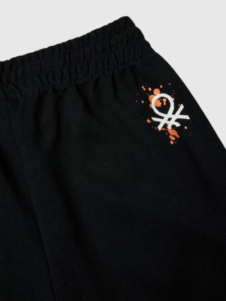 Benetton donji deo trenerke za dečaka od mešavine rastegljivog pamuka. Struk sa unutrašnjom elastičnom trakom i vezicom, džepovi umetnuti sa strane. Sa strane našivena traka, unutrašnja elastična traka na dnu nogavice, logo odštampan na leđima. Savršen za trčanje i igru.