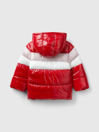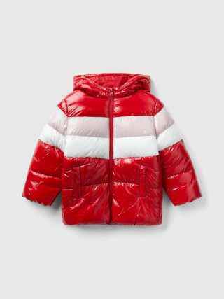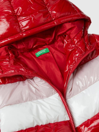 Benetton podstavljena jakna za devojčicu sa kapuljačom od sjajnog najlona Rain Defender. Color block dizajn, uobičajene dužine, dugih rukava sa izvezenim logom Benetton na levom ramenu. Praktično prednje kopčanje, džepovi sa rubom na prednjoj strani. Idealna za prve prohladne dane.