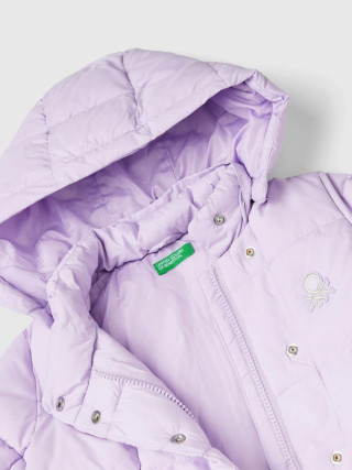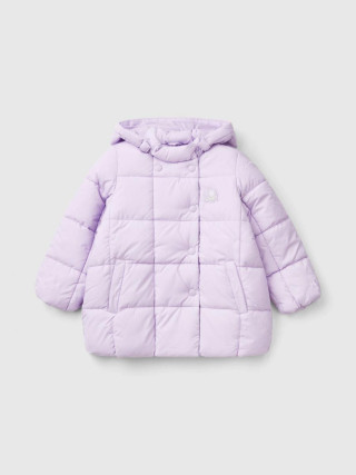Benetton duga podstavljena jakna za devojčicu od sjajne Rain Defender tkanine sa kvadratnim šavovima. Duplo prednje kopčanje sa dugmadima, prednjim džepovima, okovratnikom i praktičnom kapuljačom koja se može skinuti. Aplikacija sa logotipom od lureksa na levoj strani grudi. Bon ton stil čak i u najhladnijim mesecima.