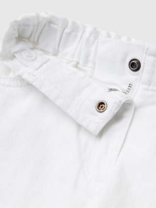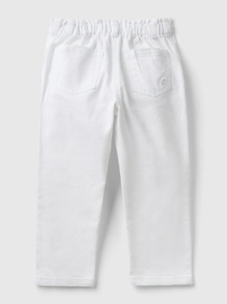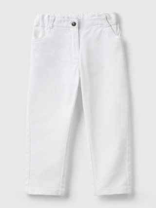 Benetton pantalone za devojčicu od rastegljivog pamuka. Visoki skupljeni struk i mekane nogavice, kopčanje patent zatvaračem i dugmetom. Zaobljeni džepovi napred, izvezeni logo na jednom zadnjem džepu. Udobne i moderne, nosive čak i sa manžetnom na dnu.