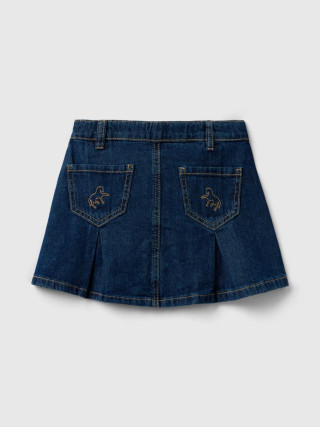 Benetton kratka suknja za devojčicu od pohabanog teksasa od čistog pamuka. Bočno otvaranje sa dugmetom, podesivi unutrašnji pojas. Dijagonalni prednji džepovi, našiveni džepovi na leđima sa vezenim konjem. Ležerno i ženstveno, sa vintage ukusom.
