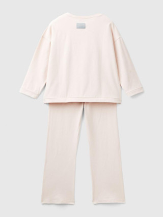 Benetton pidžama za dečaka od toplog rastegljivog pamuka. Majica sa okruglim izrezom dugih rukava sa printom Tom & Jerri na prednjoj strani. Pantalone sa unutrašnjim elastičnim strukom i proširenim donjim delom.