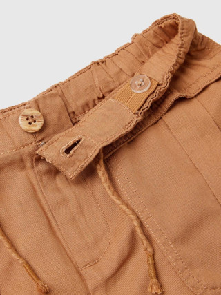Benetton bermude za devojčicu od meke viskozne tkanine sa velikim džepovima sa strane. Struk sa unutrašnjom elastičnom trakom pozadi i sa strane, vezica sa resicama. Prednji patent zatvarač i kopčanje dugmetom, unutrašnji podesivi elastični struk. Originalno i udobno.