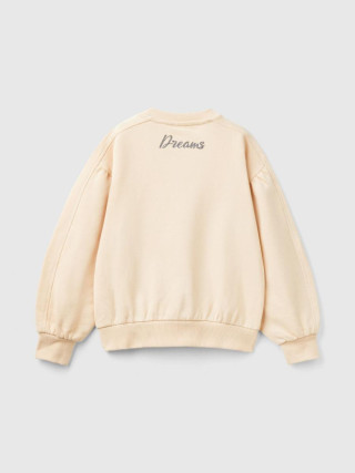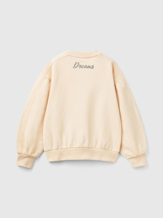 Benetton dukserica za devojčicu sa okruglim izrezom od čistog pamuka sa mekanim osećajem. Štampa na prednjoj strani i svetlucavi tekst na zadnjoj strani. Opuštenog kroja sa spuštenim ramenima, za hladan i aktuelan izgled.