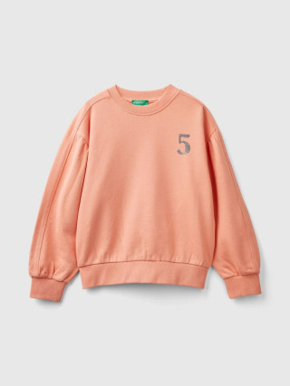 Benetton dukserica za devojčicu sa okruglim izrezom od čistog pamuka sa mekanim osećajem. Štampa na prednjoj strani i svetlucavi tekst na zadnjoj strani. Opuštenog kroja sa spuštenim ramenima, za hladan i aktuelan izgled.