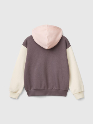 Benetton dukserica dugih rukava za devojcicu od meke mešavine pamuka sa toplim osecajem. Regular fit kroj, malo kratak. Sa kapuljacom, prednjim džepovima i grafikom sa štampanim i vezenim šljokicama.