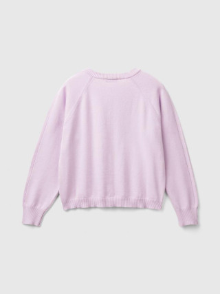 Benetton džemper za devojčicu od mešavine pamuka. Regular fit model sa kopčanjem dugmićima na prednjoj strani. Dugi raglan rukavi sa detaljima.