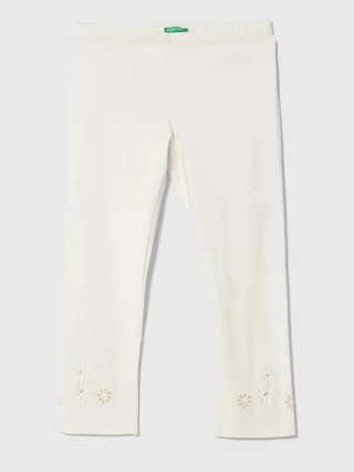 Benetton helanke za devojčicu od rastegljivog pamuka dužine 3/4. Unutrašnja elastična traka u struku, odgovarajuće izvezeno cveće na nogavicama. Regular fit model, za neobičan i ležeran odevni predmet.