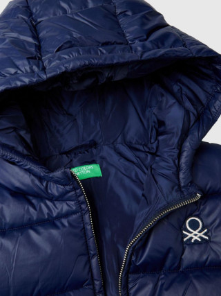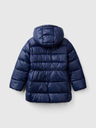 Benetton duga podstavljena jakna za devojčicu od najlona Rain Defender sa horizontalnim šavovima. Topla, ali ultra lagana, sa podstavom od 3D vate koja se uvek vrac?a u svoj oblik. Praktična kapuljača, patent zatvarač i prednji džepovi. Presečen struk sa skupom i logom na levoj strani grudi. Klasika zimske garderobe.
