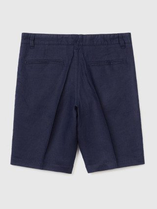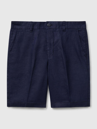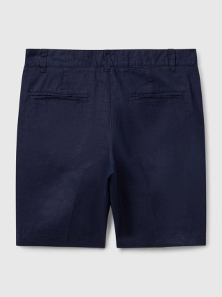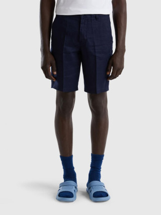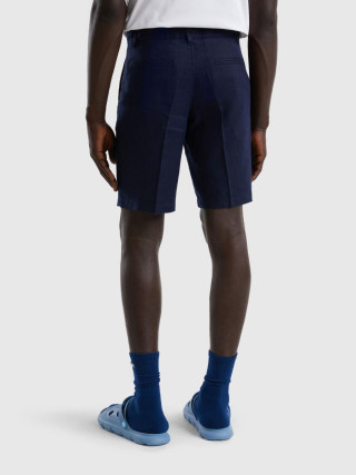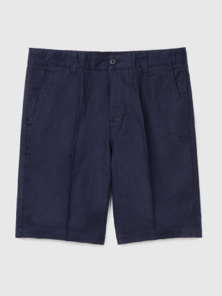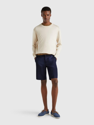 Benetton muški šorts u stilu chino modela, izrađen od čistog lana. Prednji džľepovi i mali džľep pozadi. Struk sa alkama za kaiš, rajsferšlus i dugme za zakopčavanje.