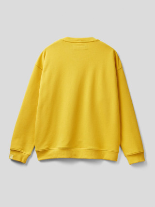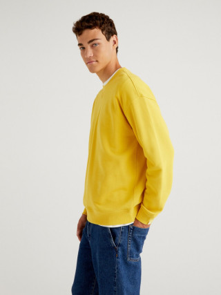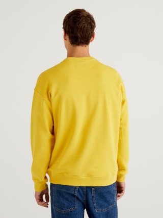 Benetton muška dukserica dugih rukava od čistog pamuka sa doslednim, ali laganim osećajem. Okrugli izrez sa rebrastim trouglastim umetkom, blago spuštenim ramenima i logotipom nanešenim na zglobu. Mekana i udobna, za opušten izgled.