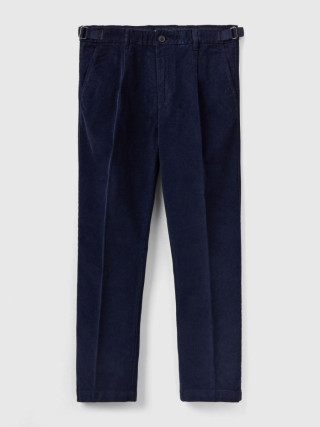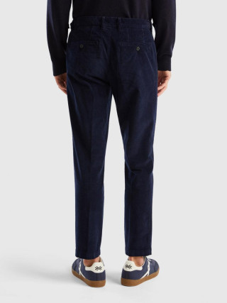 Benetton muške pantalone chino model od finog pamučnom somotu. Tanak kroj sa naborima na prednjoj strani, patent zatvaračem i otvaranjem na dugme, umetnuti bočni džepovi i džepovi sa dugmetom pozadi. Dovoljno ležerno, sa retro ukusom.