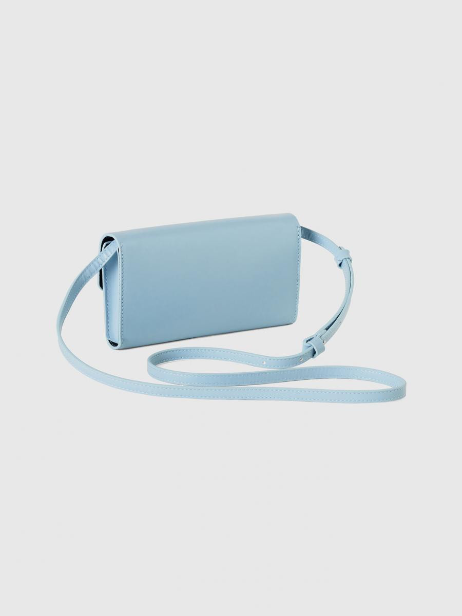 Benetton ženska torbica za mobilni telefon od glatke imitacije kože, prednji preklop sa metalnim kopčom sa logotipom. Opremljena podesivim kaišom za rame od iste tkanine. Elegantan i moderan dodatak koji uvek možete nositi sa sobom. Dimenzije: 9*18*3 cm.