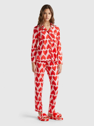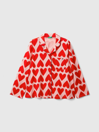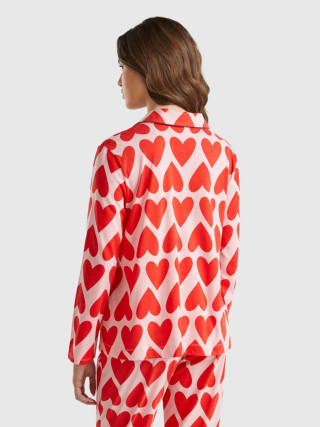 Benetton ženski gornji deo pidžame sa štampom srca. Kragna sa reverom, dugi rukavi i prednje kopčanje dugmićima. Našiven džep na levoj strani grudi sa logotipom. Napravljen od 100% pamuka sa dugim vlaknima, vrhunskog materijala koji karakteriše ekstremna elastičnost, izdržljivost i mekoća.