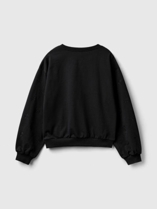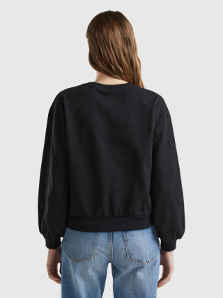 Benetton ženska dukserica sa okruglim izrezom od čistog pamuka, sa cvetnim vezom u tonu duž rukava. Savršeno za davanje romantične i ženstvene note svakodnevnim kombinacijama.