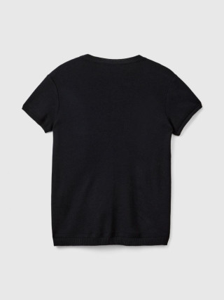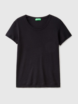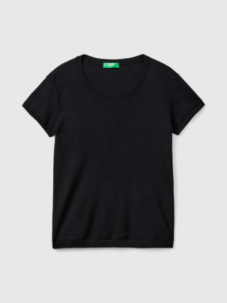 Benetton ženski džemper sa okruglim izrezom kratkih rukava od čistog triko pamuka. Udoban i svestran, kombinuje se sa mnogim odevnim predmetima. Nosite ga samostalno ili kao prolećni komad ispod jakne ili sakoa.