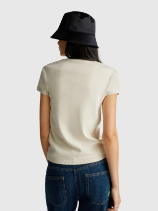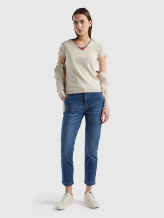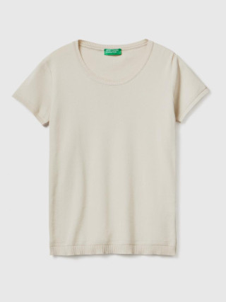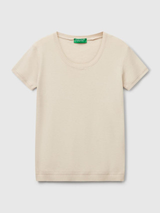 Benetton ženski džemper sa okruglim izrezom kratkih rukava od čistog triko pamuka. Udoban i svestran, kombinuje se sa mnogim odevnim predmetima. Nosite ga samostalno ili kao prolećni komad ispod jakne ili sakoa.