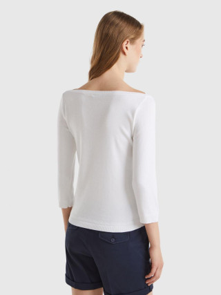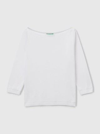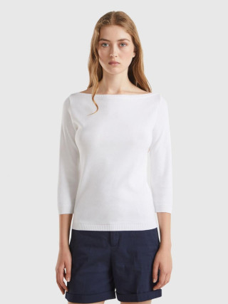 Benetton ženski džemper od čistog pamuka sa čamac izrezom i rukavima 3/4 dužine. Jednostavan, ženstven i svestran.