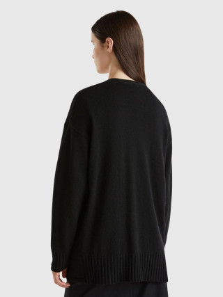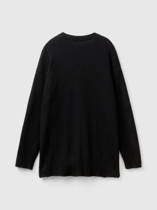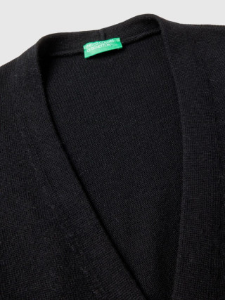 Benetton ženski kardigan dugih rukava od meke vune i viskozne tkanine. Široki kroj, V-izrez i prednje kopčanje sa dugmadima. Rebrasti detalj na donjim delu i prednjim našivenim džepovima. .