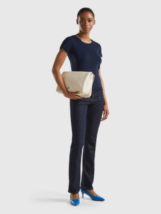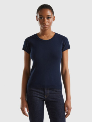 Benetton ženski džemper sa okruglim izrezom kratkih rukava od čistog triko pamuka. Udoban i svestran, kombinuje se sa mnogim odevnim predmetima. Nosite ga samostalno ili kao prolećni komad ispod jakne ili sakoa.