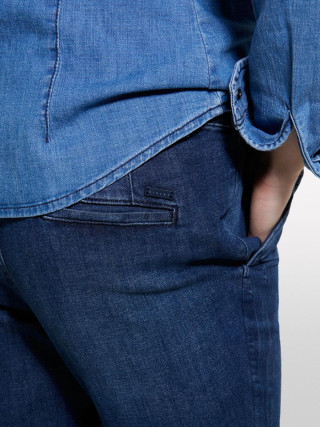 Sisley ženske slim fit farmerke od rastegljivog pamučnog teksasa. Petlje za kaiš u struku, patent zatvarač i kopčanje na dugmad, dva prednja prerezana džepa i dva zadnja džepa sa rubom.