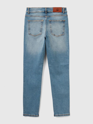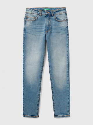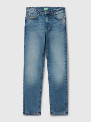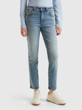 Benetton ženske pantalone visokog struka od rastegljivog recikliranog pamučnog teksasa. Slim fit model, mekši i krac´i pri dnu. Dizajn sa pet džepova i praktično otvaranje na patent zatvarač i dugme.