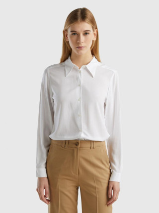 Benetton ženska košulja dugih rukava regular fit model. Klasična kragna i prednje kopčanje. Izrađena od 100% održive viskoze, proizveden od drveta iz sertifikovanih šuma i poštujući najviše ekološke standarde.