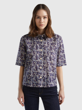 Benetton ženska košulja kratkih rukava od čistog laganog pamuka, regular fit model. Zašiljena kragna i prednji otvor za dugmićima. Šareni print po celoj odeći, savršen za leto.