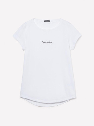 Sisley ženska majica regular fit kroja od 100% organskog pamuka, sa okruglim izrezom, kratkim rukavima i štampom na prednjoj strani.