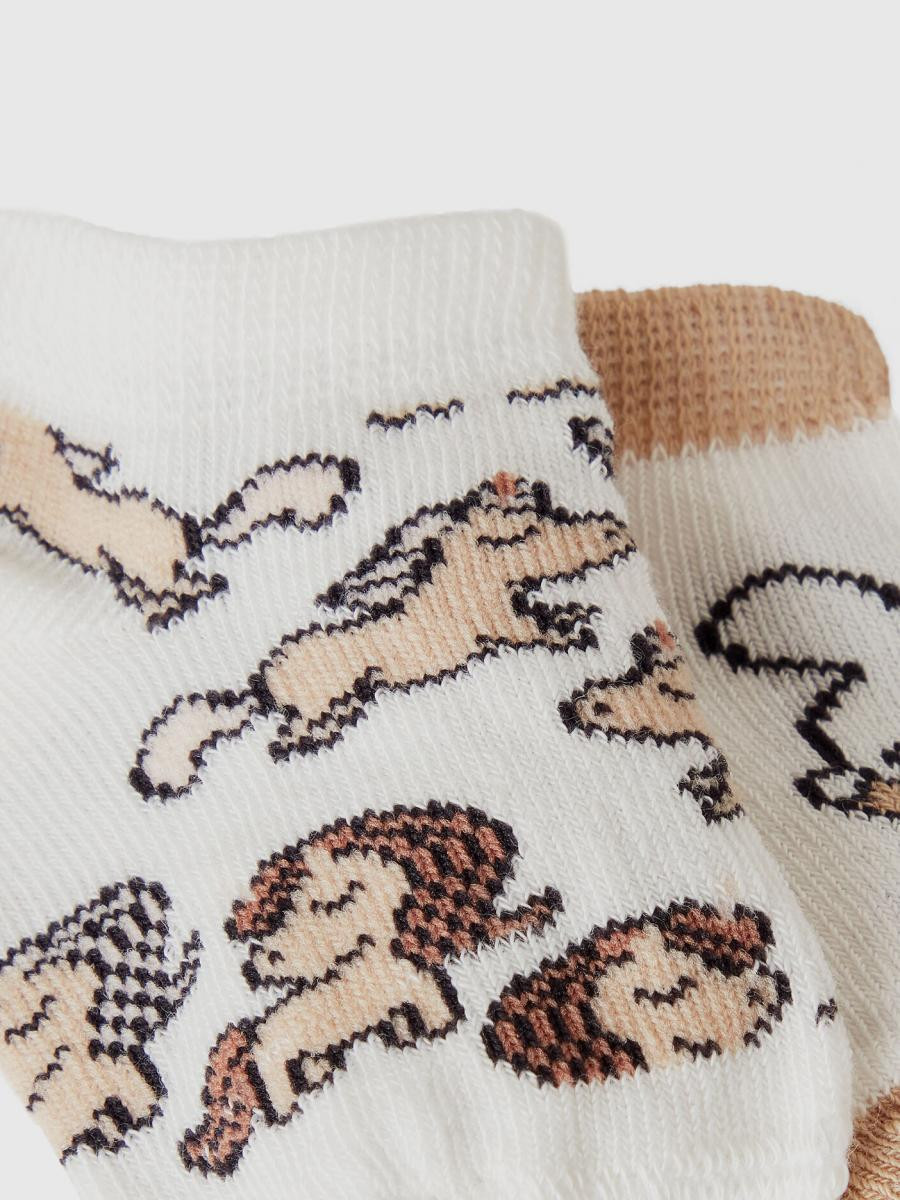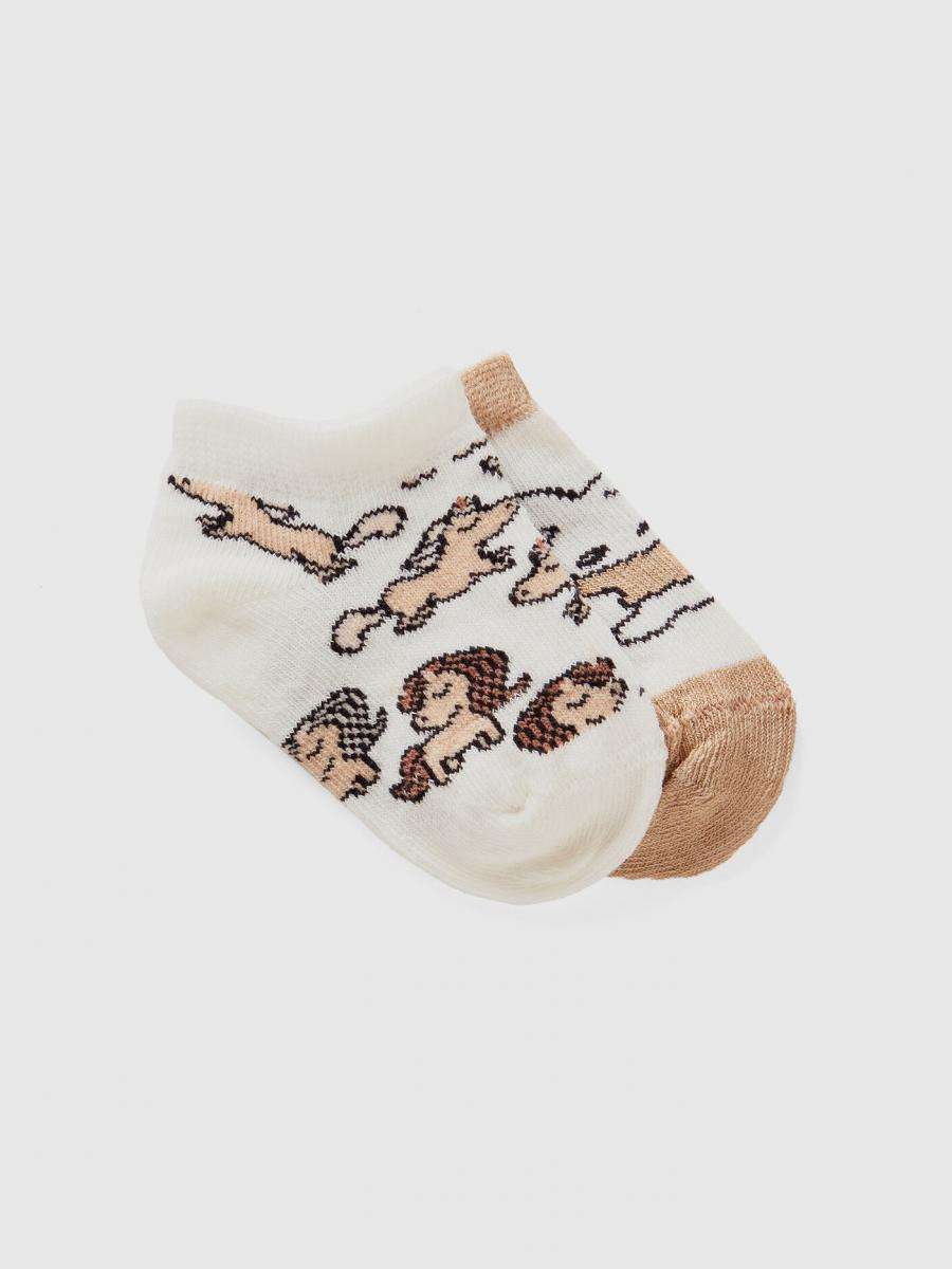 Benetton dva para kratkih čarapa za bebe od rastegljive tkanine od mešavine organskog pamuka. Jedan sa grafikom zeca, drugi sa slatkim konjima.