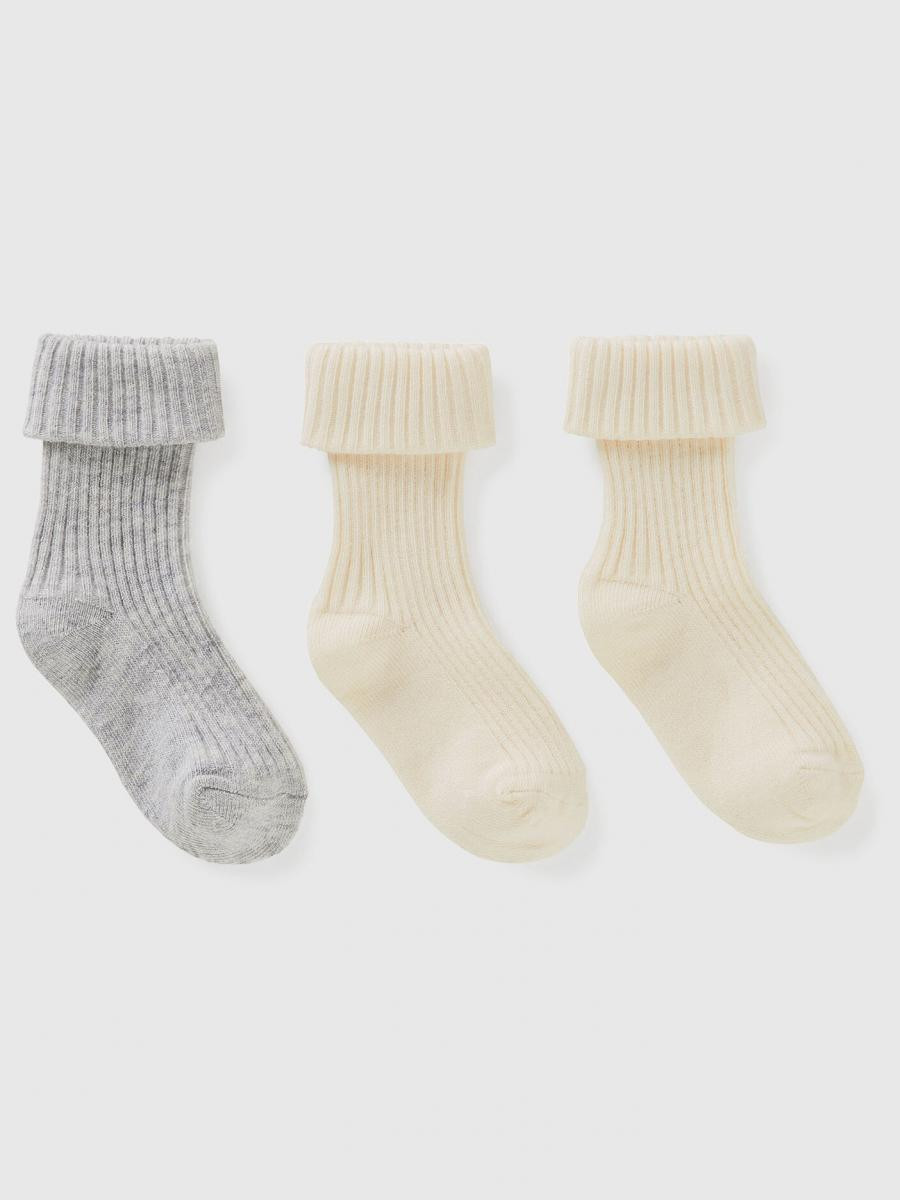 Benetton set od tri para čarapa za bebe od organske mešavine rastegljivog pamuka. Dužina iznad zkočnog zgloba.
