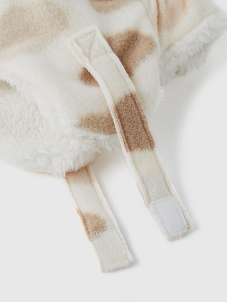 Benetton kapa za bebe od mekog flisa sa detaljima u unutrašnjosti i izgledu plišanog medvedic´a. Štampa u obliku oblaka, detalji na licu životinje izvezeni na prednjoj strani i male uši na glavi. Sa preklopom za uši sa kaiševima za vezivanje ispod brade. Slatka i topla, savršena za hladnije dane.
