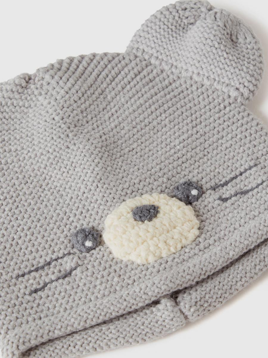 Benetton kapa za bebe od mešavine pamuka sa zabavnom heklanom aplikacijom. Lice životinje vezeno rukom na prednjoj strani i uši na vrhu. Slatka i šarmantna.
