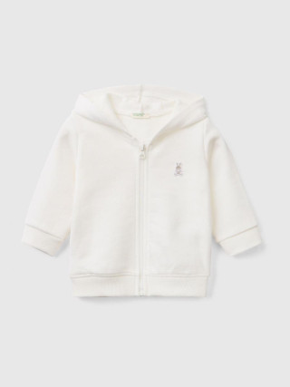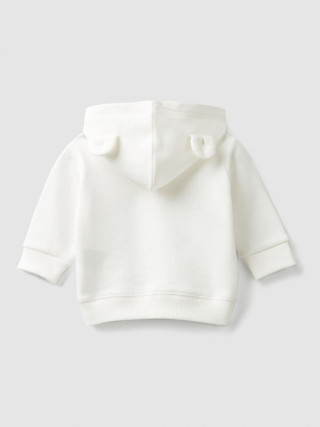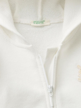 Benetton baby dukserica dugih rukava sa kapom, 100% pamuk. Logo zeke izvezen na prednjoj strani i kopčanje patentnim zatvaračem.