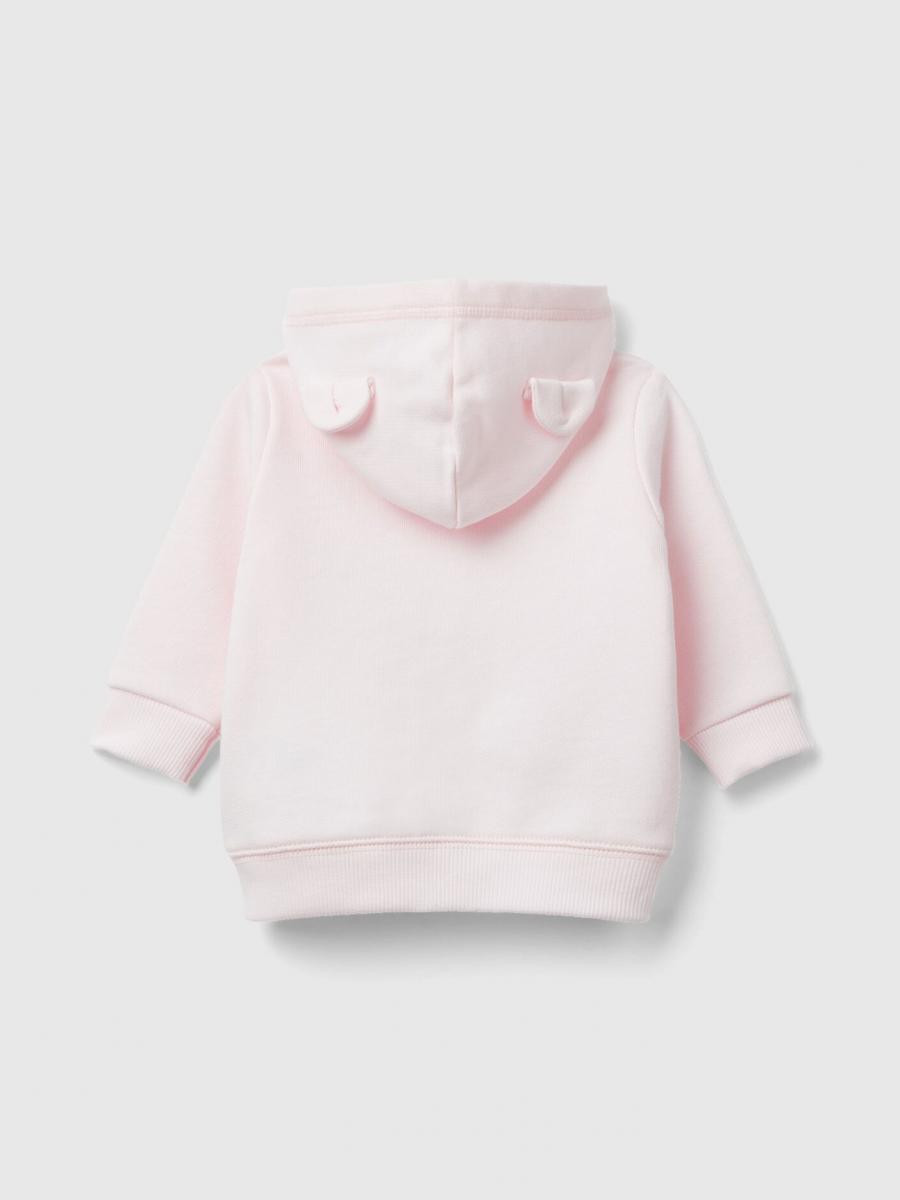 Benetton mekana dukserica za bebe od čistog organskog pamuka koja je ujedno čvrsta i lagana. Logo zeke izvezen na levoj strani grudi i otvara se sa patent zatvaračem. Praktična i zabavna sa svojom kapuljačom koja ima uši od žerseja.