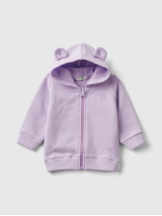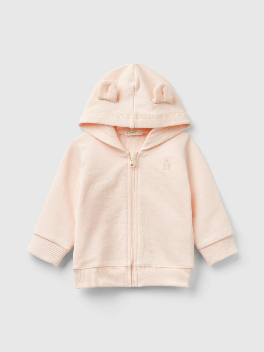 Benetton mekana dukserica za bebe od čistog organskog pamuka koja je ujedno čvrsta i lagana. Logo zeke izvezen na levoj strani grudi i otvara se sa patent zatvaračem. Praktična i zabavna sa svojom kapuljačom koja ima uši od žerseja.